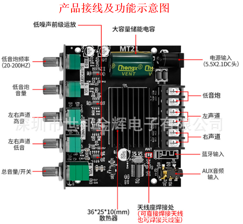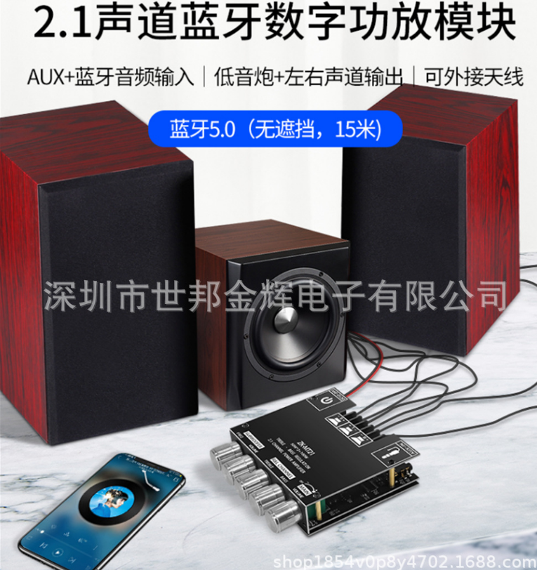 ZK-TB21高低音大功率低音炮2.1声道蓝牙数字功放模块
