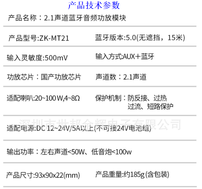 ZK-MT21蓝牙数字功放模块2.1声道高低音超重低音炮功放模块