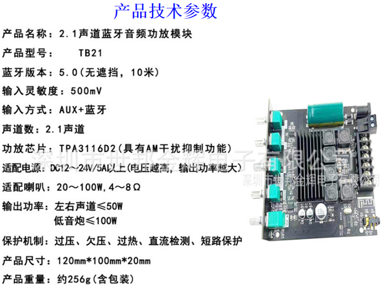 此功放板采用全新原装进口TI德州仪器TPA3116D2芯片,绝非市面上的国产芯片,产品非人为损坏,售后质保一年!!!放大板采用两个原装进口TI德州仪器TPA3116D2数字放大器芯片作为核心,一个作为左右声道功率放大器,另一个作为NE5532低音炮,具有小巧,高效,高功率的特点。