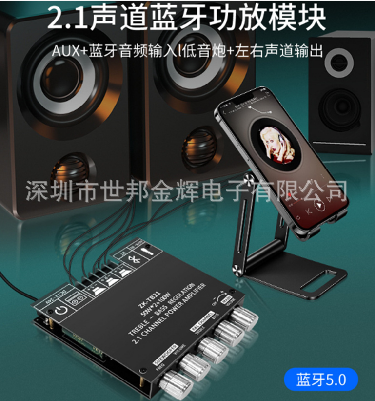 TPA3116大功率2*50W+100W功放模块2.1声道蓝牙数字功放板,产品型号:ZK-TB21