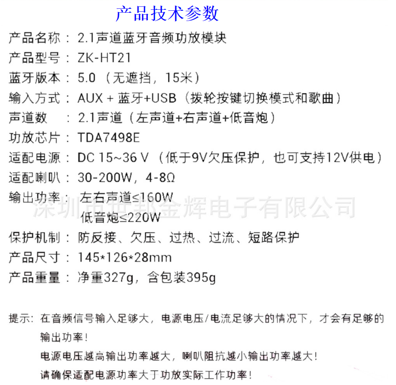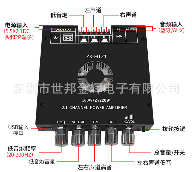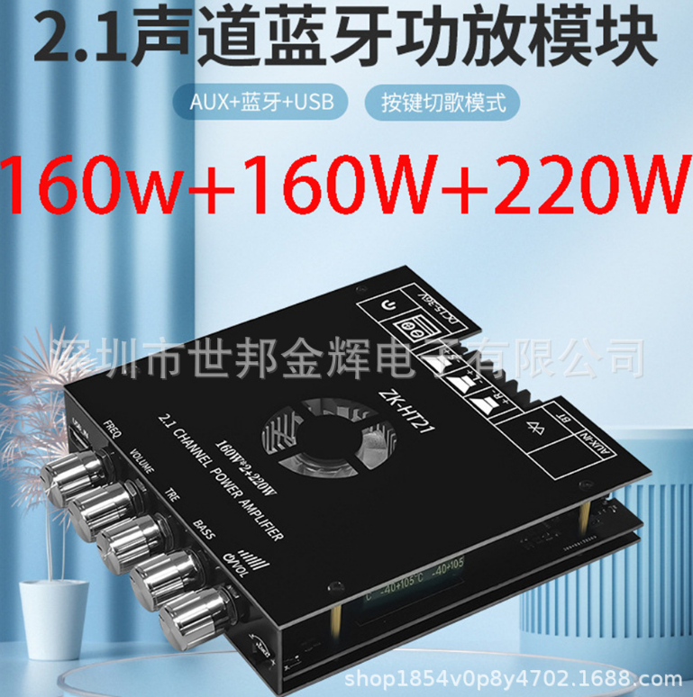ZK-TB21高低音大功率低音炮2.1声道蓝牙数字功放模块